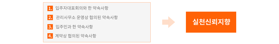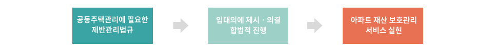 공동주택관리에 필요한 제반 관련 법규를 입대의에 제시의결하여 합법적 집행으로 아파트 재산보호관리 서비스 실현